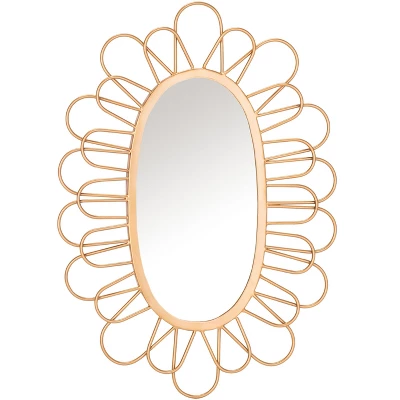 Spiral-textured loops become a sublime, sculptured flower-petal frame for the Rime Mirror. The classic oval-shaped reflective mirror of Rime exudes modern-art qualities as the centerpiece of this faux-floral design, casting it as an ideal focal point for any foyer, or living room decor. Care Instructions: Dust with a soft, dry cloth. Do not use abrasive cleaner. To clean mirror, spray a small amount of glass cleaner onto a lint-free cloth and wipe mirror clean. Disclaimer: Please note that this product is hand crafted by artisans, and none are exactly alike. Each item will have different shadings, patterning and variations in color.